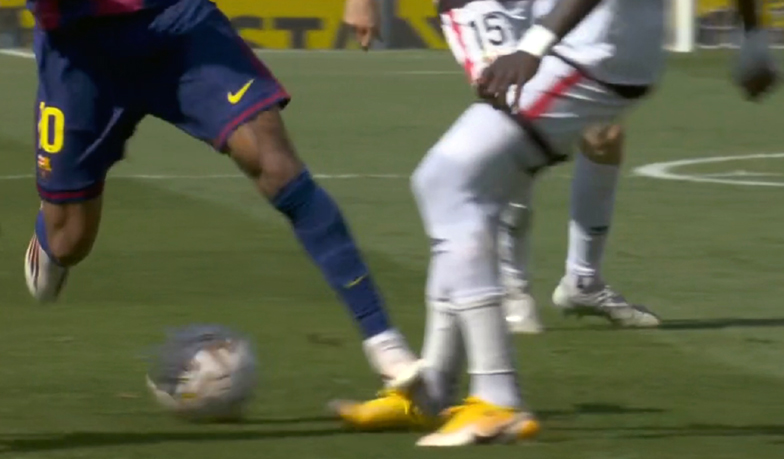 Sytuację widać na poniższej stopklatce, gdy gracz Elche (białe koszulki) wygrywa głową walkę o piłkę w środku pola, a futbolówka ostatecznie trafia do Ponce, który jest w tej sytuacji na wyraźnym spalonym. Atakujący Elche rozegrał akcję, a na końcu piłka ze skrzydła została dośrodkowana właśnie na jego głowę i trafiła do siatki.