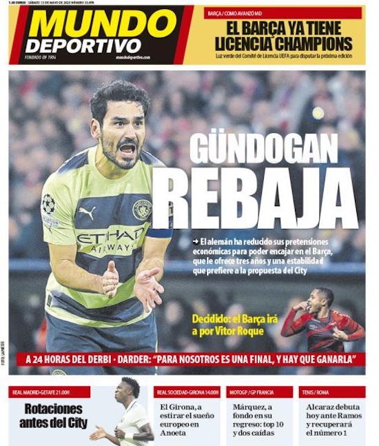 „Gündoğan – obniżka” – Niemiec zredukował swoje oczekiwania finansowe, by dostosować się do Barçy, która zaoferuje mu 3-letni kontrakt i stabilizację, którą ceni wyżej niż ofertę City.