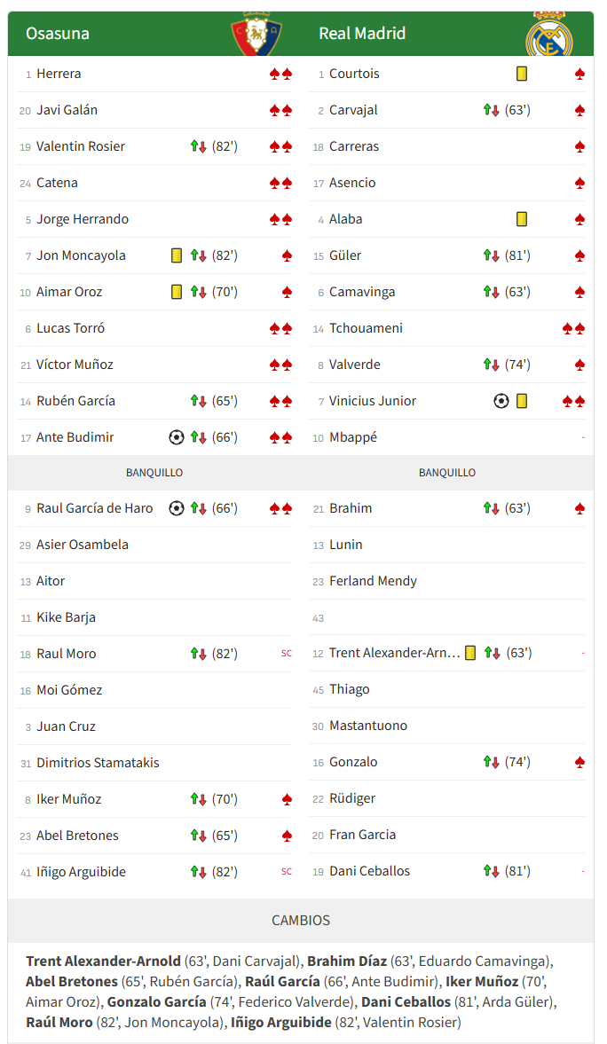 Miał kilka solidnych interwencji, ale wszystko to przykrywa jego obecność na pierwszym planie w kluczowych akcjach meczu. Nie radził sobie z Budmirem i najpierw do spółki z Courtois doprowadził do rzutu karnego dla gospodarzy, a później Raúl García ograł go w akcji bramkowej. Wcześniej Asencio złamał też linię spalonego przy podaniu otwierającym akcję.