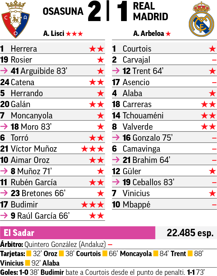 Zaczęło się jak zwykle, czyli od nadludzkiej parady po strzale… Carrerasa. Ale niestety nie skończyło się jak zwykle, ponieważ tym razem Belg był jednym z antybohaterów. To po jego faulu arbiter podyktował rzut karny, który wykorzystał Budimir. Przy zwycięskim golu dla Osasuny mógł zrobić niewiele więcej.