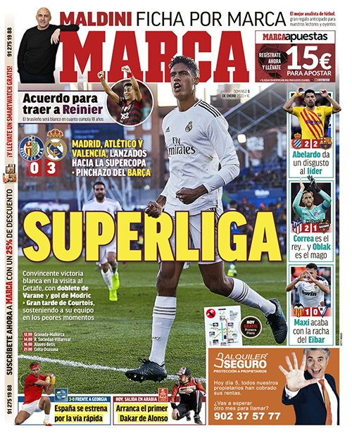 Porozumienia w sprawie Reiniera. Brazylijczyk zostanie graczem Realu, gdy skończy 18 lat. Abelardo zniechęca lidera. Correa jest królem, a Oblak magikiem. Maxi przerywa passę Eibaru. Julio Maldonado, hiszpański dziennikarz i analityk znany jako Maldini, dołącza do Marki. Hiszpanie pokonują Gruzinów 3:0 w ATP Cup. Startuje pierwszy Dakar z udziałem Alonso.